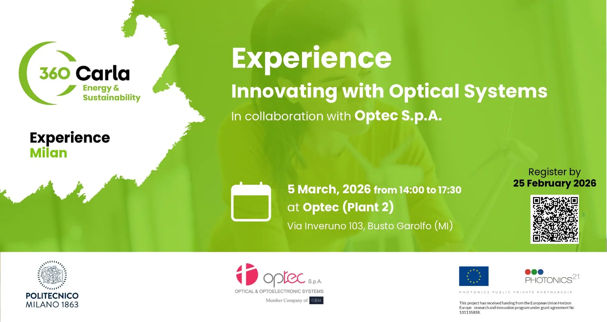 Daniela Comelli, associate professor in the Department of Physics, is organising a series of visits to companies and start-ups active in the photonics sector as part of the 360 CARLA project, funded by the European Union.