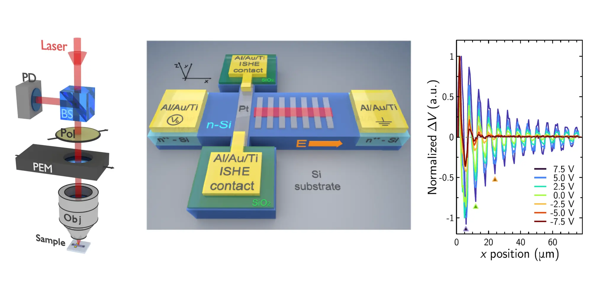 A central theme is the development of ultra-low-power device functionalities enabled by spin-charge interconversion and by the unique properties of topological and low-dimensional states, aiming at scalable architectures that can operate at room temperature. In parallel, we study spin-current generation, detection and modulation in Si/Ge/SiGe platforms, leveraging band-structure engineering and electric-field control to access drift-diffusion regimes of spin transport in non-local architectures. Alongside these directions, we explore light-activated processes in semiconductors and at their interfaces, combining electrical readout with operando optical probes to reveal photo-induced mechanisms relevant for functional devices like sensors and near-infrared photodetectors.