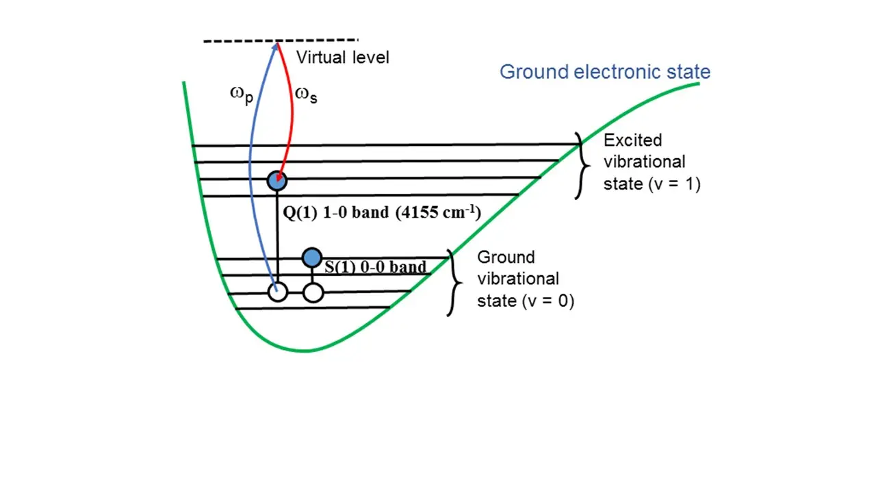 The thesis focuses on the ultra-accurate experimental determination of the energies of several Q- and S-branch transitions of the fundamental rovibrational band of H2, which fall in the 4000-4600 cm-1 range. The molecular excitation is obtained in a Coherent Raman approach by means of two cw laser fields, the so-called pump and Stokes fields (wp and ws in the figure, respectively), whose frequency difference is made to match the vibrational frequency of the transition. For the measurements to be accurate, the frequencies of both lasers are calibrated against an atomic clock through interposition of an optical frequency comb (Nobel prize invention for Physics in 2005), which can be thought as an absolute ruler for optical frequencies. As measurements are performed at several pressures under the perturbation of collisions, multiple-fitting procedures are applied to the Coherent Raman spectra to extrapolate transition energies at zero-pressure and compare them with ab-initio calculations of the molecule at rest.