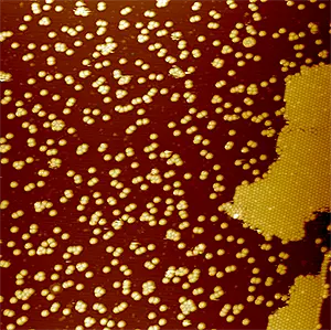 Figure 1 STM image (80 x 80 nm2) of the early stages of C60 fullerene growth on the oxidized Fe surface.