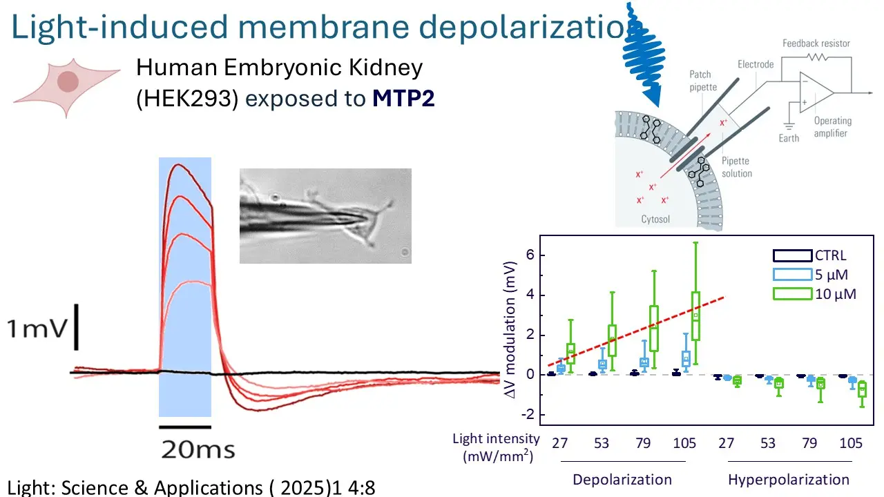 The overarching goal of our research is to harvest light energy in biological entities for controlling their metabolism and their functioning. Current implant technology exploits electrical signaling at the electrode-neural interface. This approach has fundamental problems which limit both the performance and safety of the implants, bearing high invasiveness. Inducing light sensitivity in living organisms is an alternative approach that provides ground breaking opportunities in neuroscience. Optogenetics is a spectacular demonstration of this, yet limited by the viral transfection of exogenous genetic material. The thesis regards alternative approaches aimed at NON-genetically inducing light sensitivity in cells or organism by using light-responsive nanostructures (0.1-1 μm) or molecular actuators that trigger signaling cascades. The activity comprise the study of the photophysics of the actuators both in vitro as well in vivo, and their effects on investigated cells. Applications in medicine, neuroscience and bio engineering spans form artificial retina prosthesis for rescue vision in blind eyes to neuronal networks investigations, including brain, to muscle cells control.