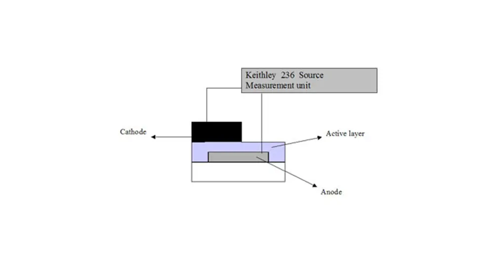 Il dispositivo è, normalmente, composto da uno strato di ITO, ossido di stagno ed indio, (l’anodo), un film organico (lo strato attivo) ed uno strato di alluminio (il catodo). E’ possibile anche porre al posto dell’alluminio uno strato di calcio per aumentare l’iniezione di elettroni all’interno del dispositivo o un film sottile di PEDOT tra l'ITO ed il film organico per aumentare l’iniezione di lacune. Le caratteristiche I/V (corrente / tensione) del dispositivo sono misurate con un Keithley 236. L’intensità di elettroluminescenza è misurata attraverso un fotodiodo posto di fronte alla faccia del dispositivo dove è presente l’ITO (trasparente alla radiazione nel visibile). Inoltre è possibile misurare lo spettro di elettroluminescenza con un OMA ( Optical Multichannel Analyzer). In figura è riportato uno schema del dispositivo visto dal lato.