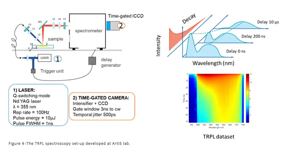 - Time-resolved photoluminescence (TRPL) spectroscopy and PL lifetime imaging to study radiative recombination paths of states with lifetimes spanning from sub-nanosecond to tenths of microseconds (Figure 4)