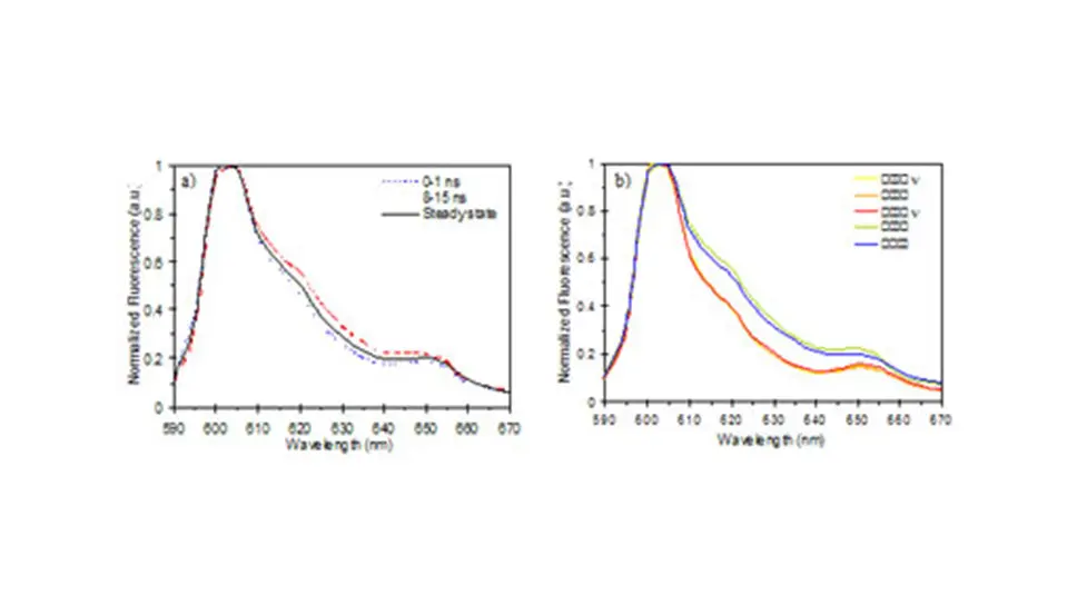 La strumentazione per spettroscopia di fluorescenza disponibile presso il Dipartimento di Fisica consente l’acquisizione di misure risolte in tempo e spettro. Oltre allo spettro di emissione ed alle vite medie di fluorescenza, è quindi anche possibile acquisire spettri della fluorescenza emessa in un particolare intervallo temporale (“gate”). Questo consente di studiare le proprietà spettrali di emissione delle diverse specie fluorescenti presenti, discriminate in base al tempo di decadimento.