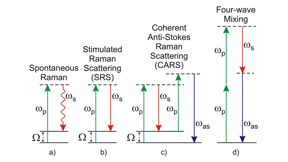 - It typically works out of resonance, i.e. without population transfer into electronic excited molecular states, thus minimizing photobleaching and damage to biological samples;
