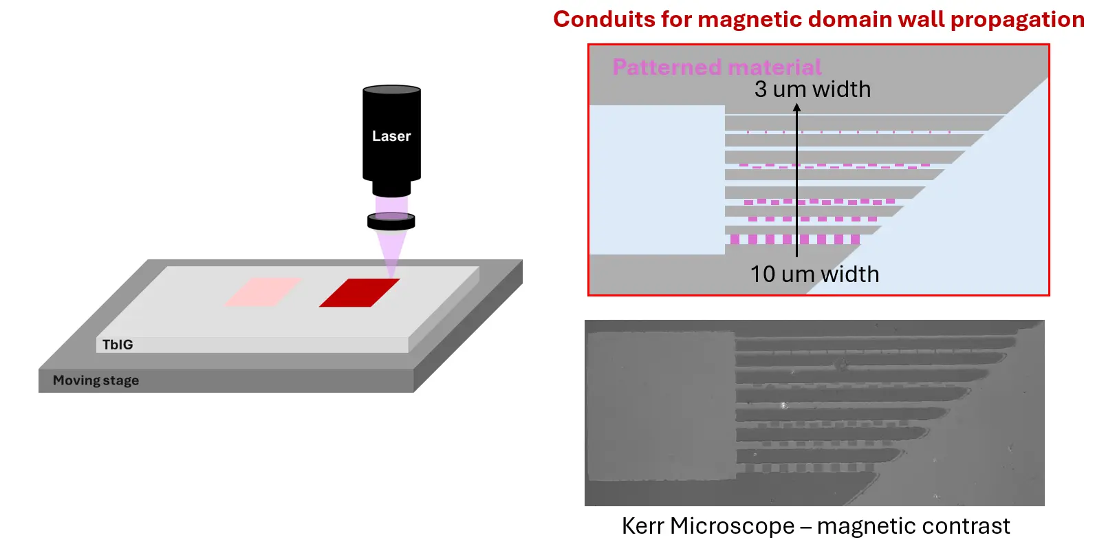 antiferromagneti (AF). In particolare, verrà dimostrato il patterning delle proprietà magnetiche di ferrimagneti (FI) (estendendo i risultati ottenuti dal gruppo su ferromagneti (FM)). Si svilupperà poi una tecnica di magnetometria a gradiente termico per la caratterizzazione alla nanoscala delle proprietà magnetiche di sistemi patternati. Infine, si consolideranno alcune collaborazioni nell’ambito della caratterizzazione THz di materiali magnetici e nell’utilizzo di correnti (tramite spin orbit torque) per controllare la magnetizzazione.