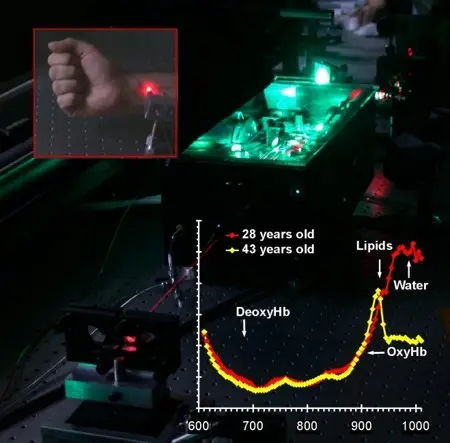 The DOS laboratory is based on the time-domain approach which permits to disentangle absorption from scattering contributions based on the distribution of photon time-of-flights in the medium. The laboratory is equipped with broadband pulsed tuneable laser sources and time-resolved single-photon detectors, leading to record performances in terms of spectral coverage, sensitivity and acquisition time.