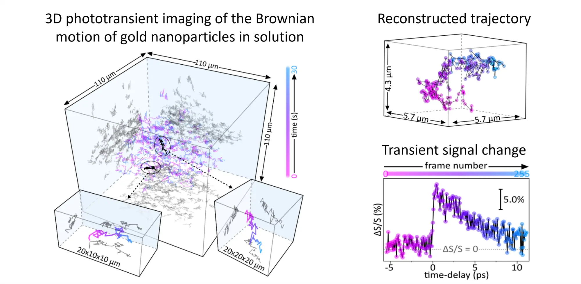 In our lab we have recently developed a solution to this problem based on multiplexed off-axis holography, which lets us capture shot-noise limited widefield transient images regardless of the frame rate and number of pixels, thus acting as an all-optical lock-in camera. We have applied this to measure the femtosecond response of single gold nanoparticles and also to study the ultrafast carrier diffusion in new semiconductor materials for photovoltaics. Importantly, since it is a holographic technique, both amplitude and phase images are obtained, which gives us access to all tools of modern digital holography. This means that when imaging single nanoobjects in a three-dimensional context, objects that are out of focus can be analyzed post-image acquisition and their precise depth position can be characterized. We have demonstrated this by shooting movies of the 3D Brownian motion of dozens of individual gold nanoparticles in solution over a volume of view of 100х100х100 μm3.